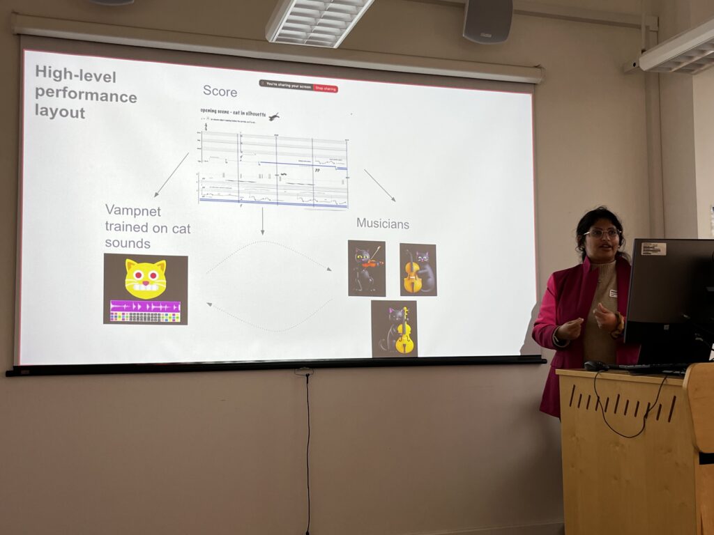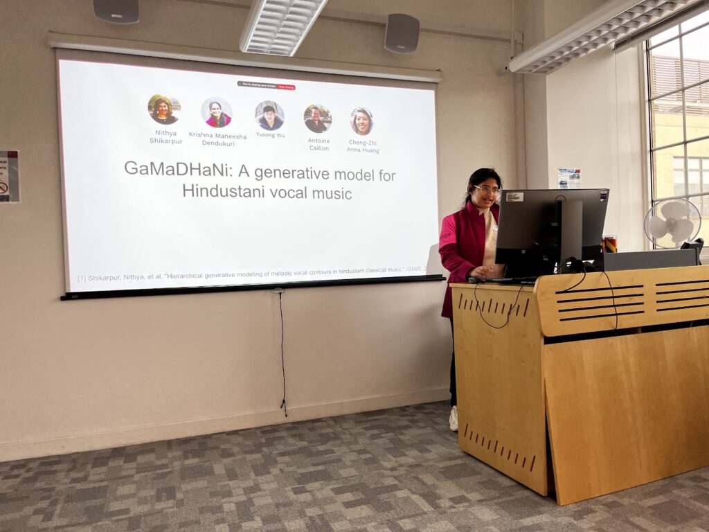 Abstract : Recent advances in generative music modelling open up rich avenues for creative exploration and expression. As both a musician and researcher, my work focuses on two interconnected goals: (1) developing generative models that meaningfully engage with the musical context and aesthetics of specific traditions, and (2) designing interactive systems that foster creative collaboration between humans and generative models. First, I will introduce GaMaDHaNi, a hierarchical generative model for Hindustani vocal music. Through a hierarchical system, modelling pitch contours first followed by spectrograms, GaMaDHaNi captures the microtonal nuances that characterize this tradition. I will further discuss the challenges of conditioning such models on musically relevant parameters such as raga. Second, I will share insights from βcat-in-loopβ, a collaborative performance created with the Cat in Black ensemble and my collaborators Weilu Ge and Hugo Garcia.